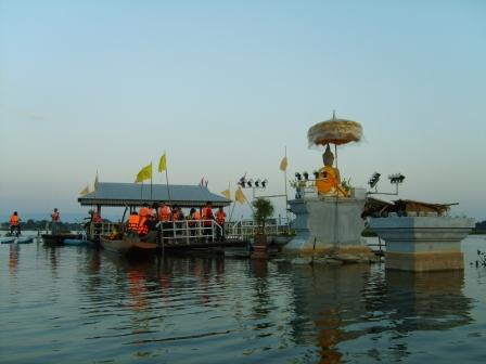 จากนั้นเรือจะพายมายังพระพุทธรูปศิลากว๊านพะเยา โดยการใช้หินถมกลางเป็นฐานแล้วอัญเชิญพระพทธรูปมาประดิษฐาน มีโป๊ะลอยน้ำให้คนขึ้นมาชม